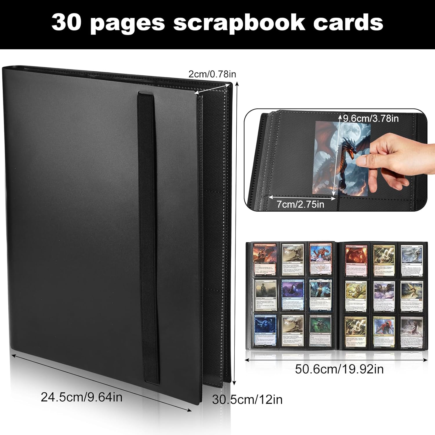 – Ce classeur dispose de 30 pages, chacune pouvant contenir 18 cartes, soit un total de 540 cartes. Cela vous permet de conserver une large gamme de cartes en toute sécurité.