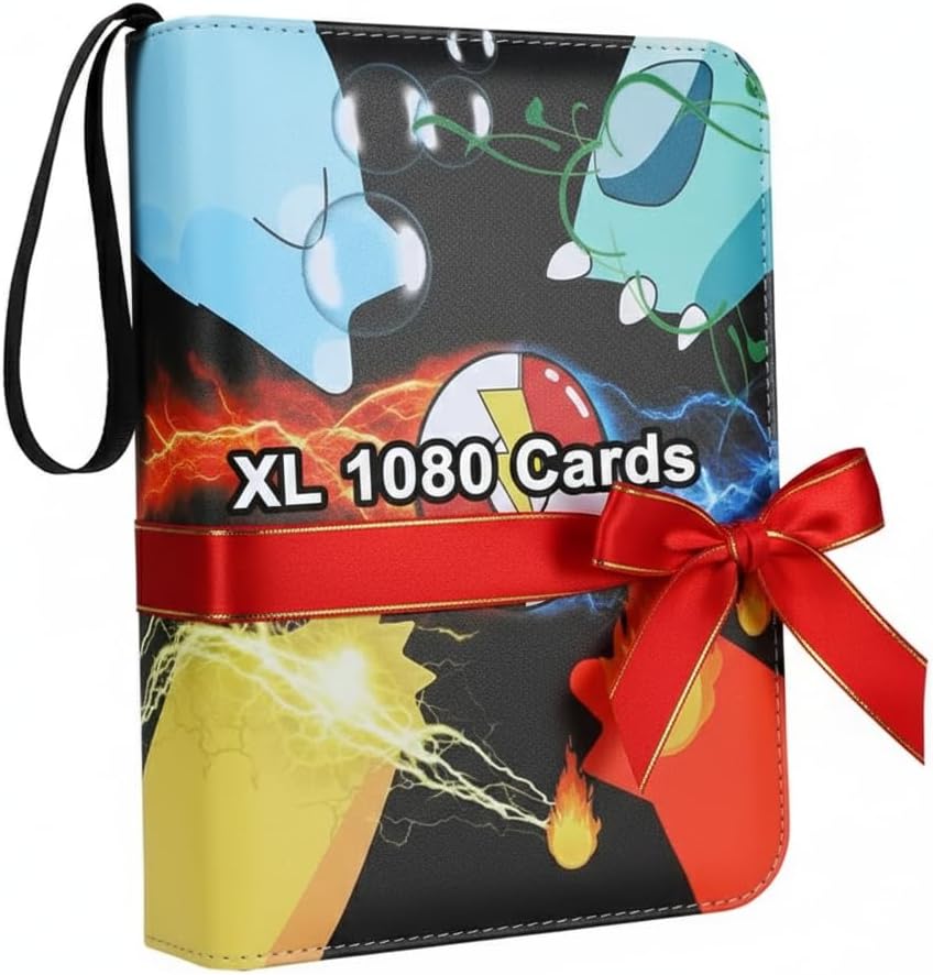 Our large black album holds up to 480 cards and is perfect for storing and displaying your precious Pokémon card collection. With a sturdy binder and high quality trading card sleeves, this album protects your cards from damage and keeps them in pristine condition. Proudly show off your gold cards and add them to this impressive collection album. Get this stunning collection album now and complete your collection. Ideal art and craft gift for him and her, perfect Christmas gift for friends and family, great birthday gifts for Asian and Westerners