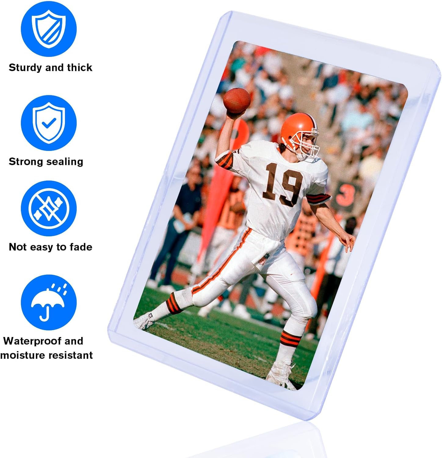 High quality material: card protectors are made of durable PVC material, waterproof and moisture-resistant, strong sealing, not easy to tear, can play the role of dust and not easy to fade.