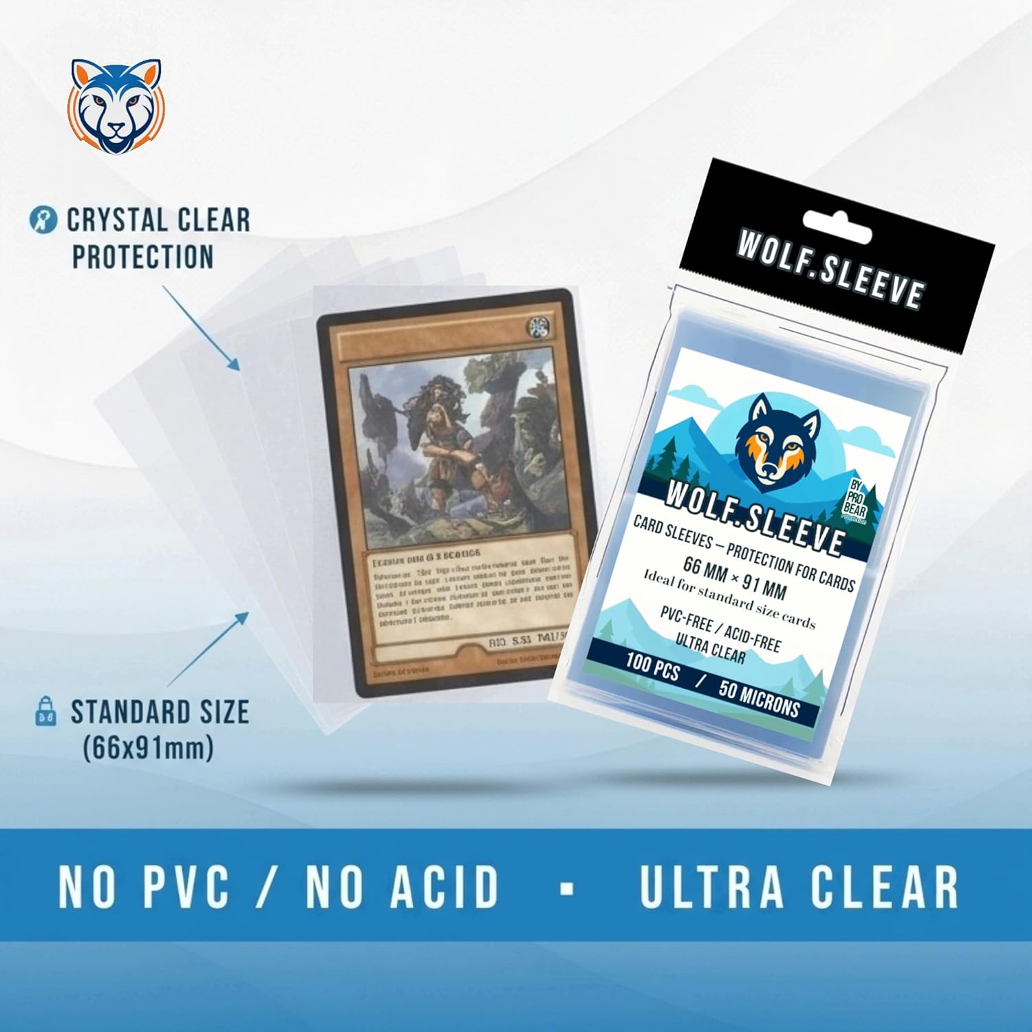 Les sleeves Wolf-Sleeve sont spécifiquement conçus pour s’adapter à la plupart des cartes à collectionner de taille standard, mesurant 66 x 91 mm. Grâce à leur format polyvalent, vous pouvez facilement les ranger dans des albums, portfolios ou toploaders, ce qui facilite l’organisation de votre collection. Imaginez pouvoir accéder rapidement à vos cartes tout en les protégeant efficacement des rayures et de l’usure.